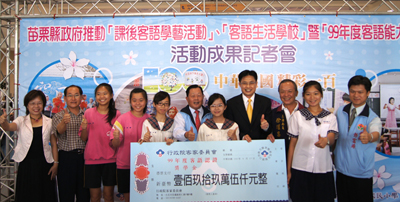 此外,為誘發年輕人及兒童學習客語的意願,行政院客委會特別提供獎學金給通過客語能力認證的在學學生,黃主委表示,在報名及通過人數上,都充分反應獎學金措施確實有效,而100年起也將試辦幼幼級客語能力認證,讓不會閱讀及寫字的學齡前孩童,也能因學習客語而獲得成就感。