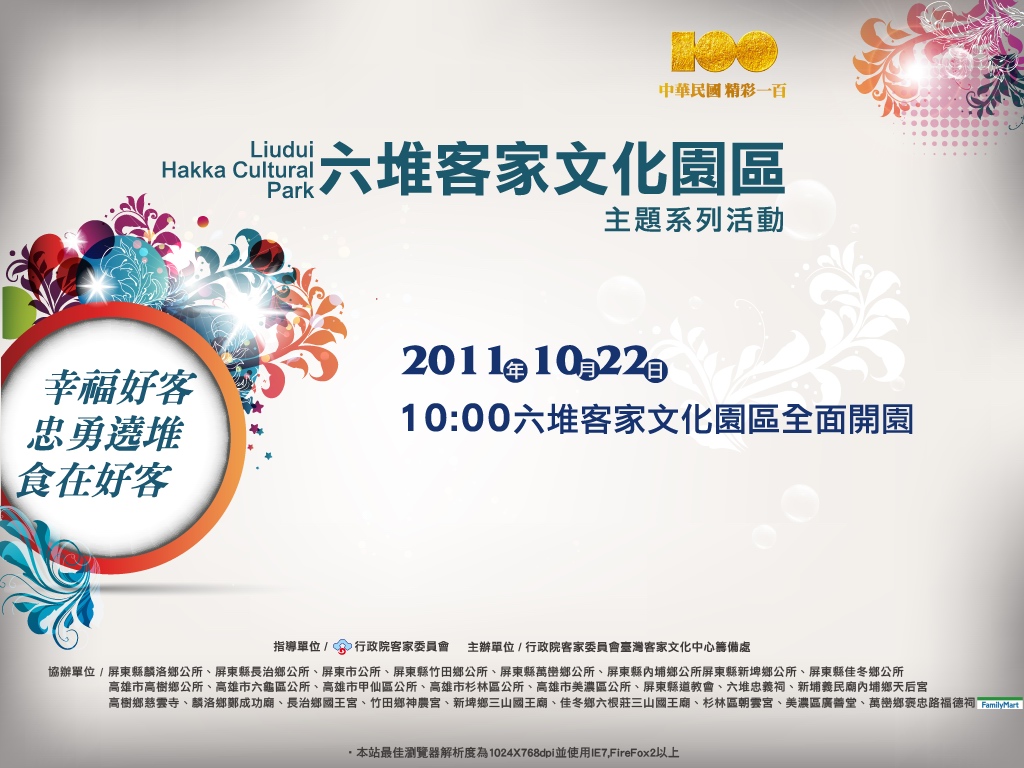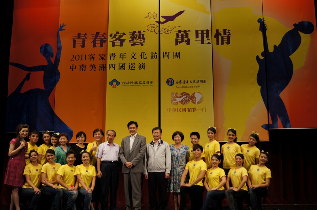 為提供客家青年參與國際客家事務之管道,展現世代薪傳新氣象,行政院客委會今( 100 )年首度籌組「客家青年文化訪問團」,預計於 10 月 15 日至 30 日前往巴拿馬、巴西、巴拉圭及阿根廷等 4 國展開訪演交流活動。 15 位成員平均年齡僅 20 歲,各個學有專精,在多位名師訓練下,充分展現新一代的客家活力!
