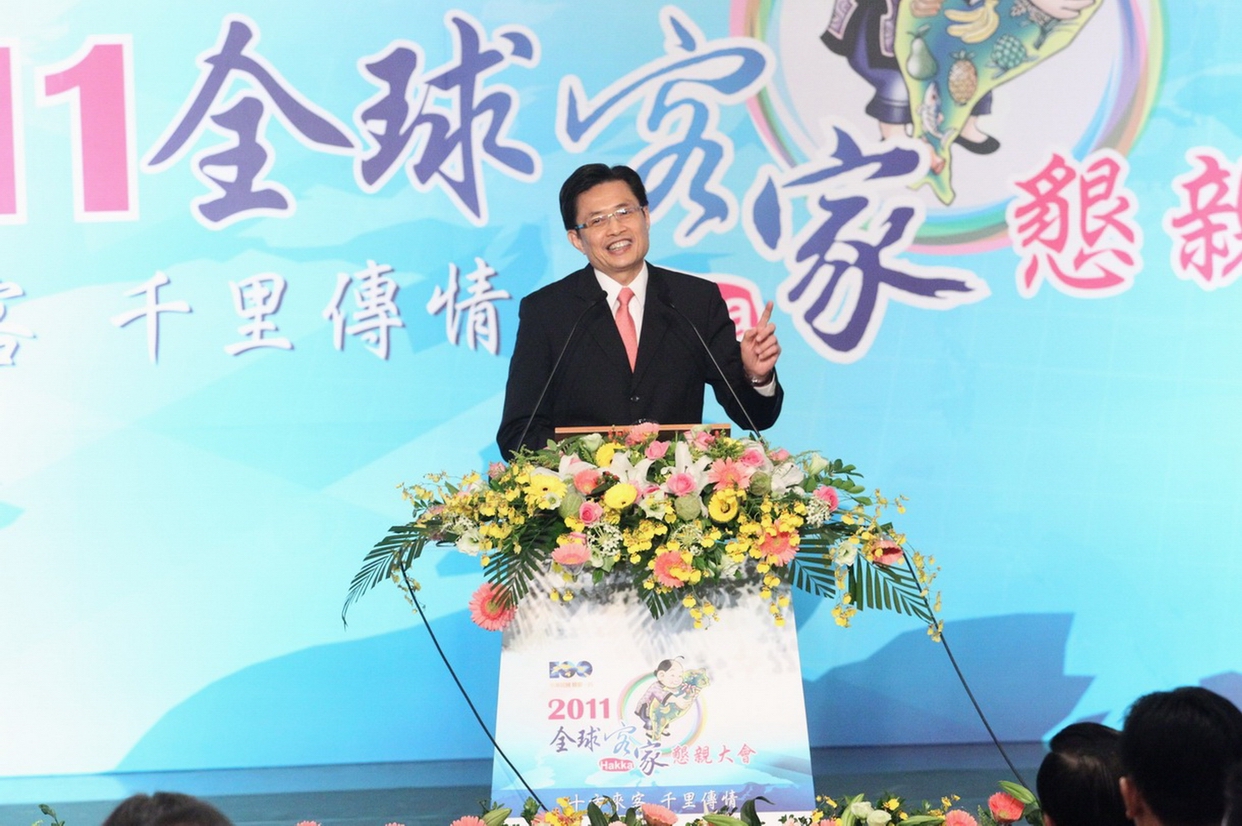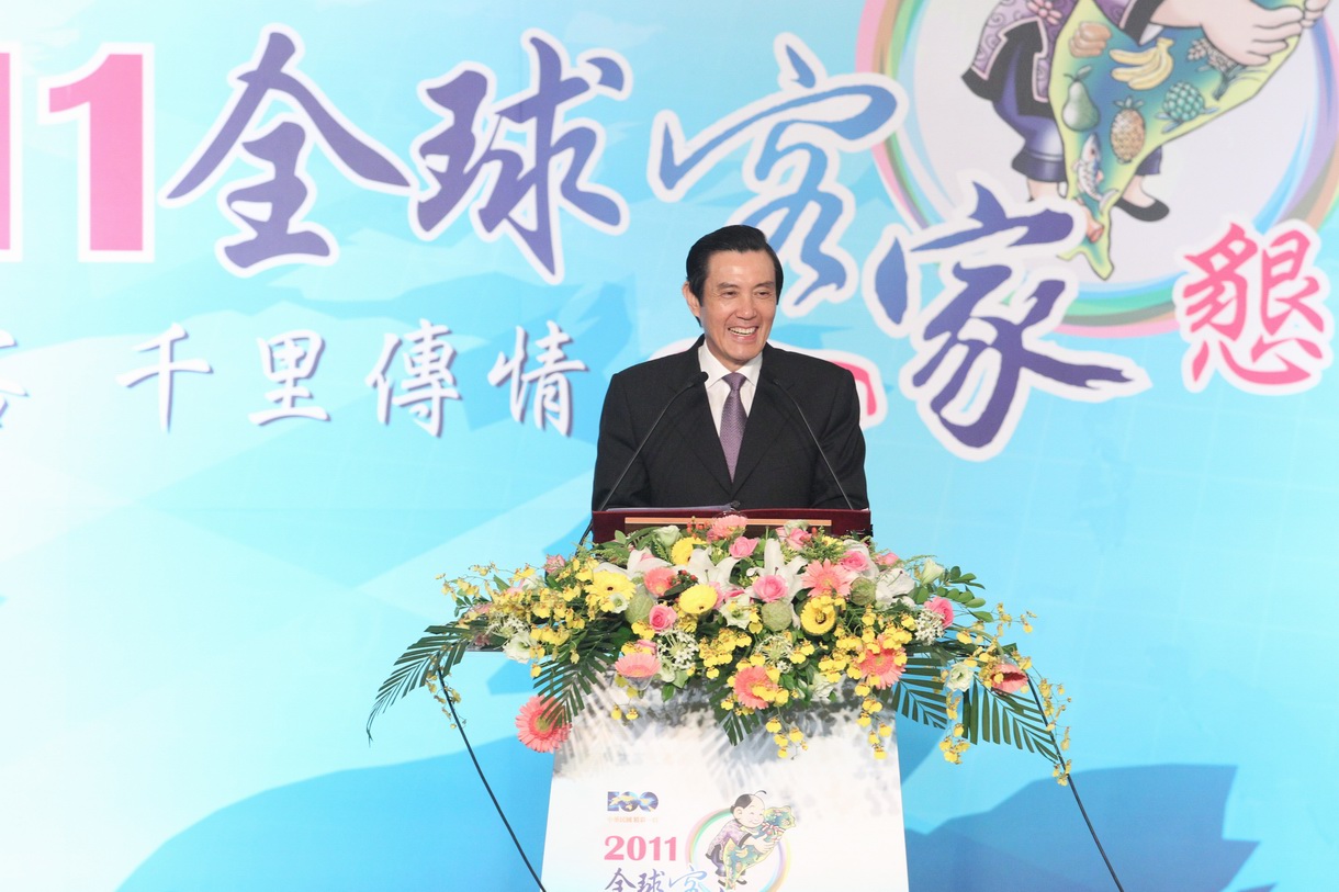 以身為客家子弟為榮的馬總統,也特地撥空參加盛會,不但以客語致詞,更吟唱客語詩詞,博得滿堂彩。他說,台灣對客家文化的重視獨步全球,不僅完成第一部客家基本法立法、國家考試增設客家事務行政類科,更推動客語薪傳師、客語家庭、客語公事語言制度,並定期辦理全球客家文化會議,制定全國客家日等;讓「牽成客家、繁榮客庄」的理念逐步實現。