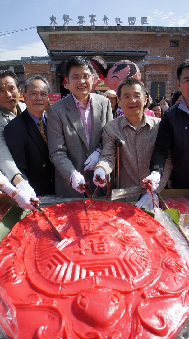 陰雨連綿的天氣終於放晴,搶在元宵節前的最後一個周末,臺中市東勢區的客家庄 5 日舉辦全臺獨一無二的「2012東勢新丁粄節」,120台斤的巨型新丁粄超吸睛,為元宵佳節增添喜氣。客家委員會主委黃玉振親手切開超大新丁粄,並將象徵福氣的紅蛋一一分送給在場民眾,祝褔大家龍年好運到。