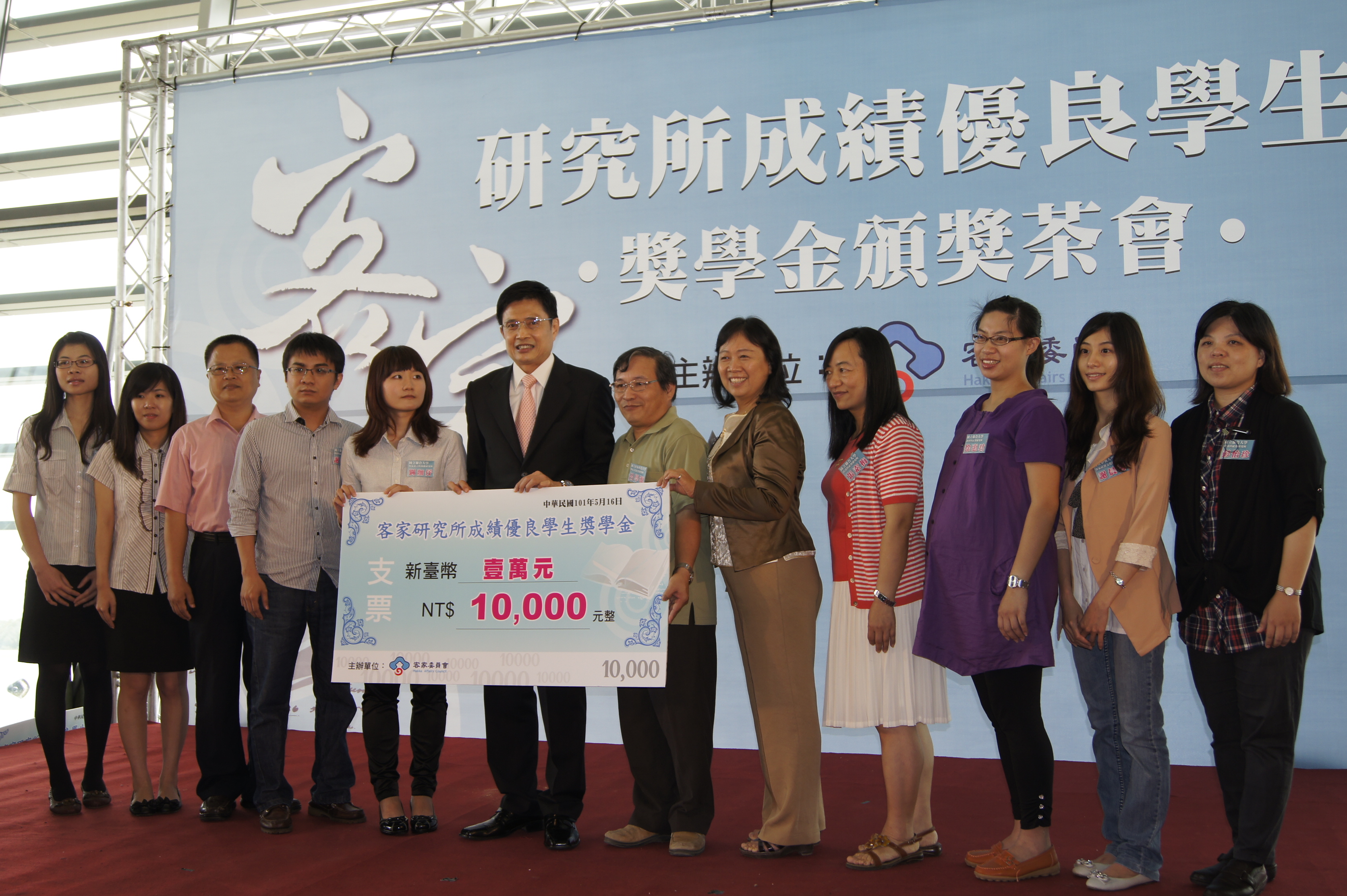 「我們會和客家學院站在一起!」客委會主委黃玉振16日在首次舉辦的「客家研究所學生獎學金頒獎茶會」上,向獲獎學生及觀禮師長肯定保證。為厚植客家學術、建立客家知識體系,客委會101年首次針對各大學院校客家研究所成績優異學生頒發獎學金,計17位學生獲得這項殊榮。