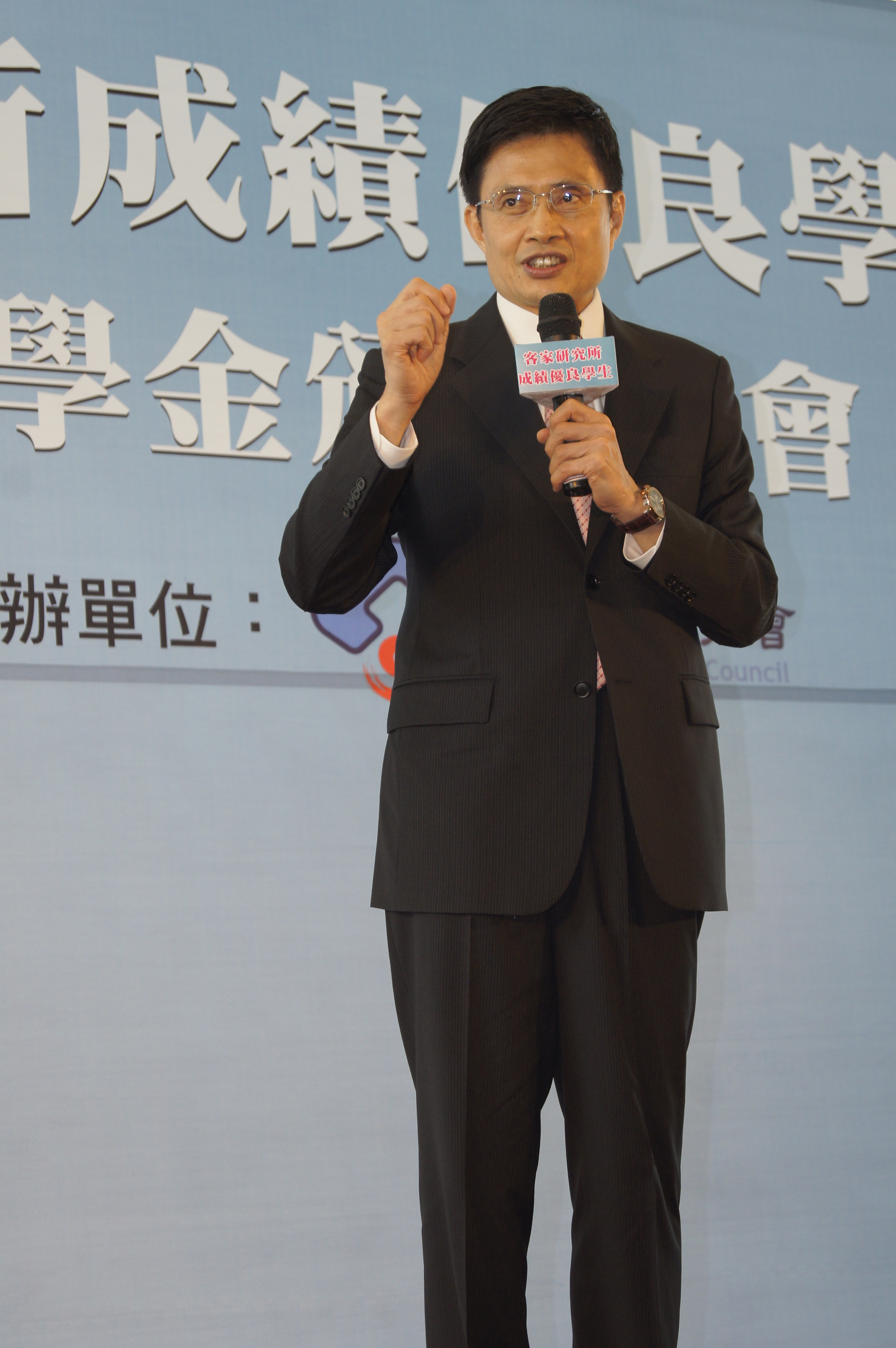 此外,客委會更自101年2月起頒布「客家委員會獎勵客家研究所學生獎學金試行作業要點」,客研所學生可爭取「成績優良獎學金」及「入學獎學金」。黃主委強調,一直以來,他都在思考如何能給予客研所學生更實質的獎勵,雖然獎學金的金額不高,但代表著客委會力挺客家學院師生的心意,他堅定的說:「我們會和客家學院站在一起!」黃主委也呼籲台下的受獎學生能學以致用,發揮客研所的堅強實力,希望大家都能扮演火車頭的角色,深植客家研究,帶動客家學術,讓「客家學」能充滿朝氣、蓬勃發展。