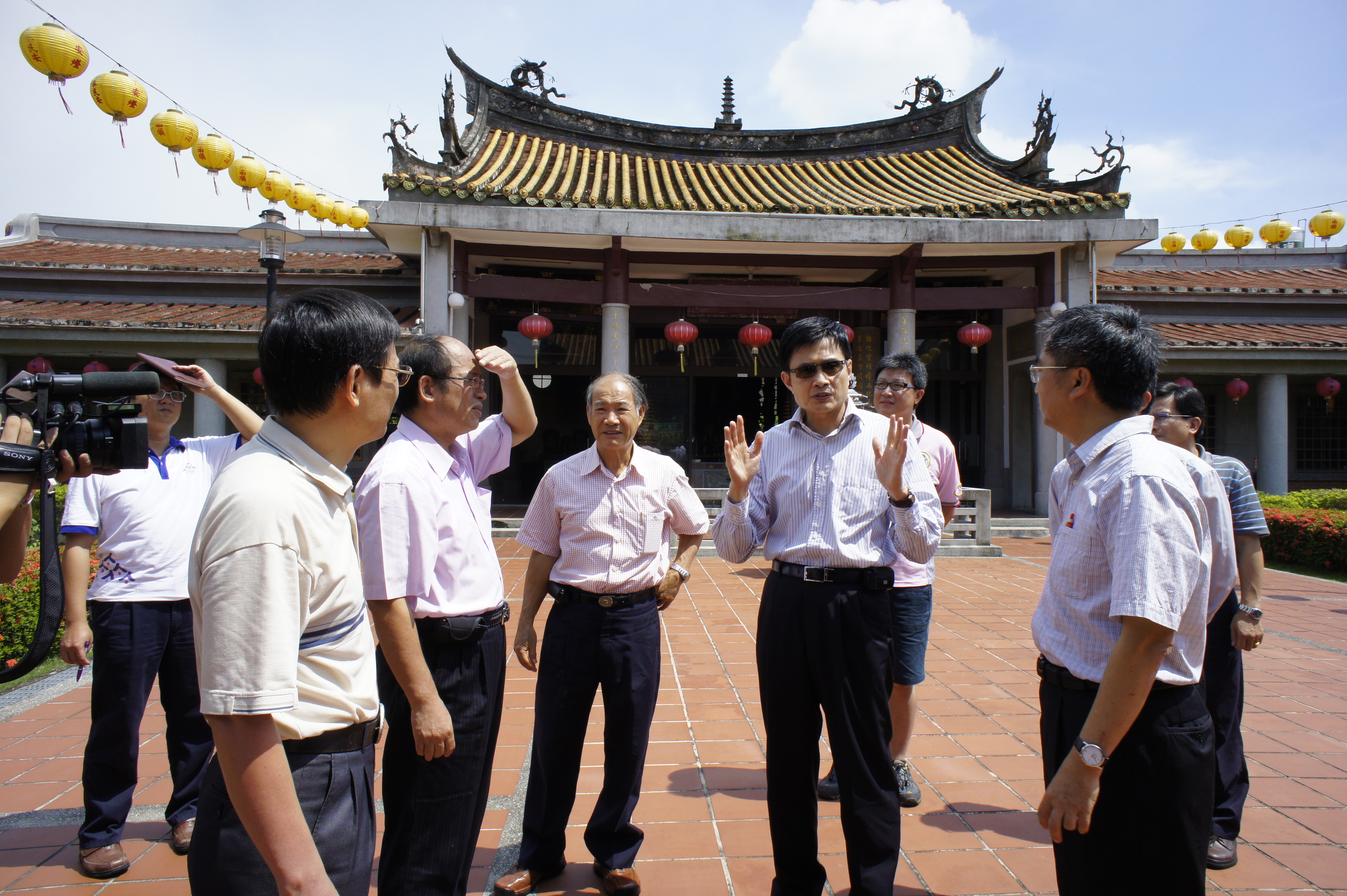 黃主委25日首站抵達新竹新埔義民廟,做為客家信仰中心,新埔義民廟香火鼎盛,更是新埔知名景點。虔誠上香祈福後,黃主委感謝義民爺的庇佑,讓客家越來越興盛、繁榮,隨後與義民廟總幹事魏北沂交換意見,強調要將義民爺保家衛民、忠勇護鄉的精神,永續保存並傳承下去。