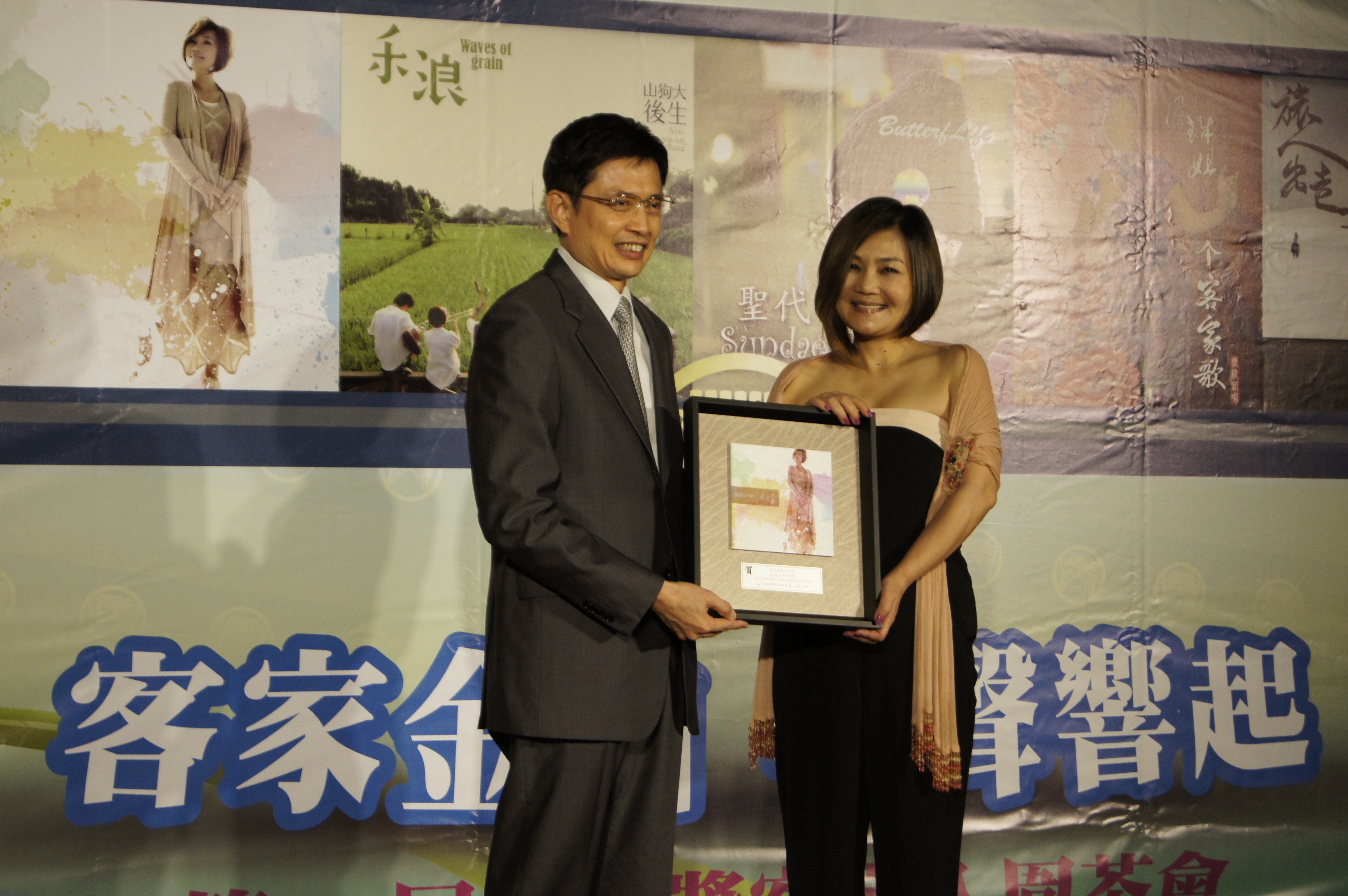 國內樂壇年度盛事—金曲獎即將在本周六頒獎,客家委員會特別在19日舉辦「客家金曲 掌聲響起」茶會,邀請本屆金曲獎入圍的客家音樂人們齊聚一堂,彼此祝賀、分享心得。客委會主委黃玉振也親自到場表達祝賀之意,並期許客家音樂人們能將客家精神透過音樂傳播,予以發揚光大。
