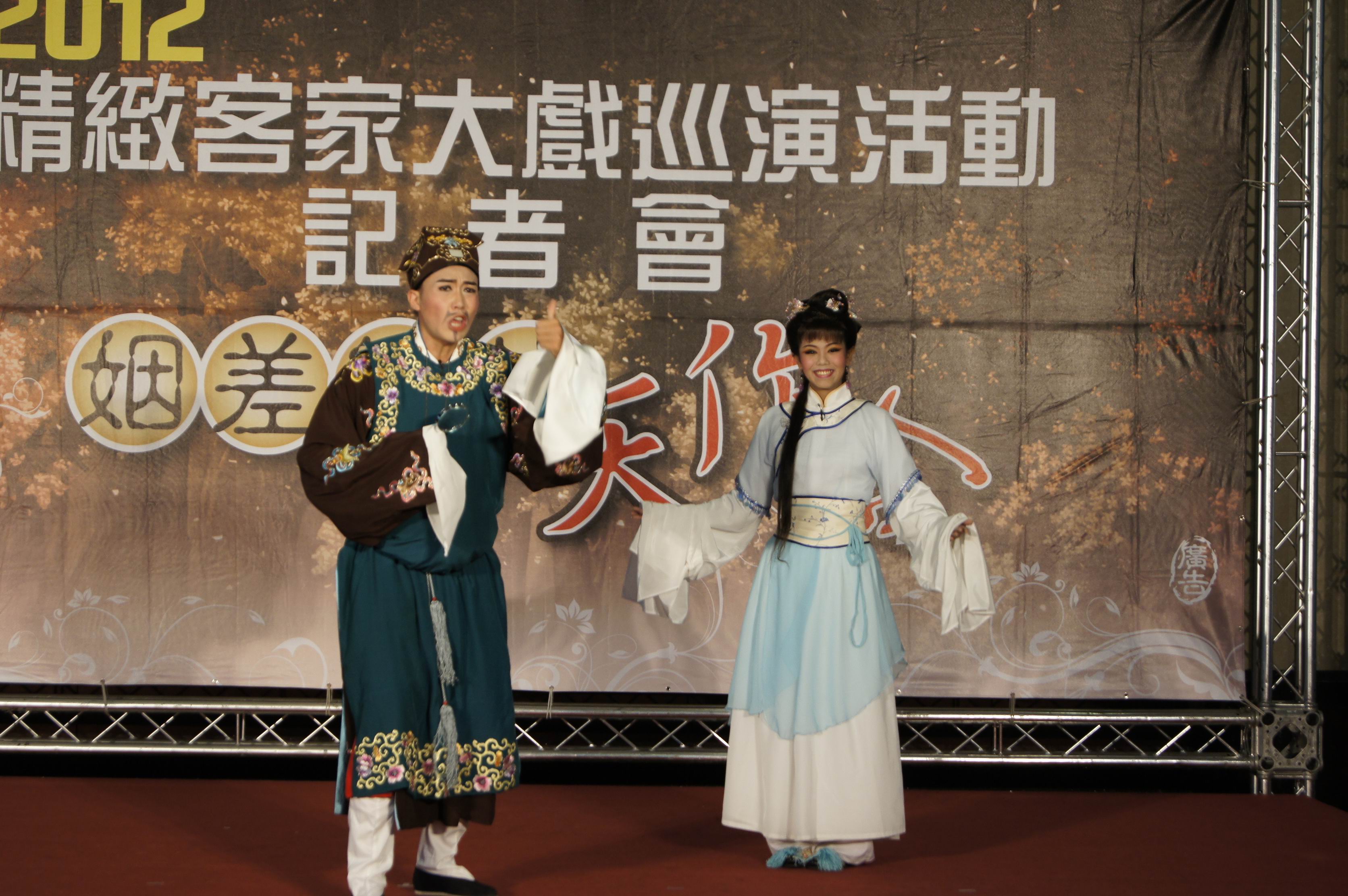 客家文化源遠流長,在音樂、文學、藝術上均令人驚豔,而最能將各種文化表現融合在一起的就是戲曲。在今日舉行的「2012精緻客家大戲巡演活動」記者會上,榮興客家採茶劇團團員特別演出一段「姻差緣錯天作合」中的精彩戲碼,靈活的身段和豐富的表情令人目不轉睛,加入客家俚語的詼諧對白,讓現場貴賓不時莞爾。