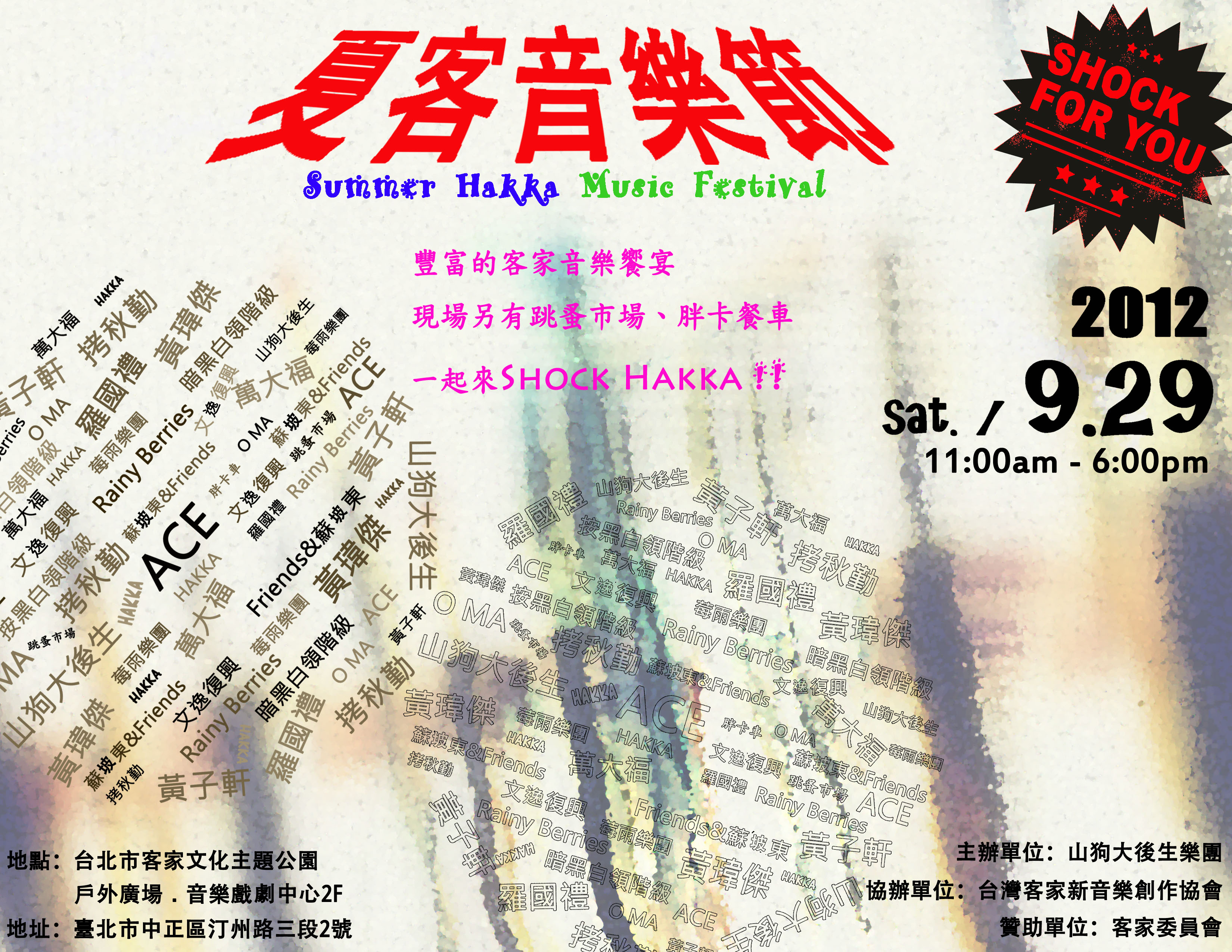 2012精緻客家大戲巡演首場於9月29日在南投縣國姓鄉南天宮開演,接下來陸續到新竹縣、桃園縣、花蓮縣、臺東縣及苗栗縣等地共計演出6場,以宴饗廣大鄉親,歡迎大家暫時抽離繁忙的工作與生活,一起享受客家戲曲美宴!活動相關訊息請至客委會網站(http://www.hakka.gov.tw/)」查詢。