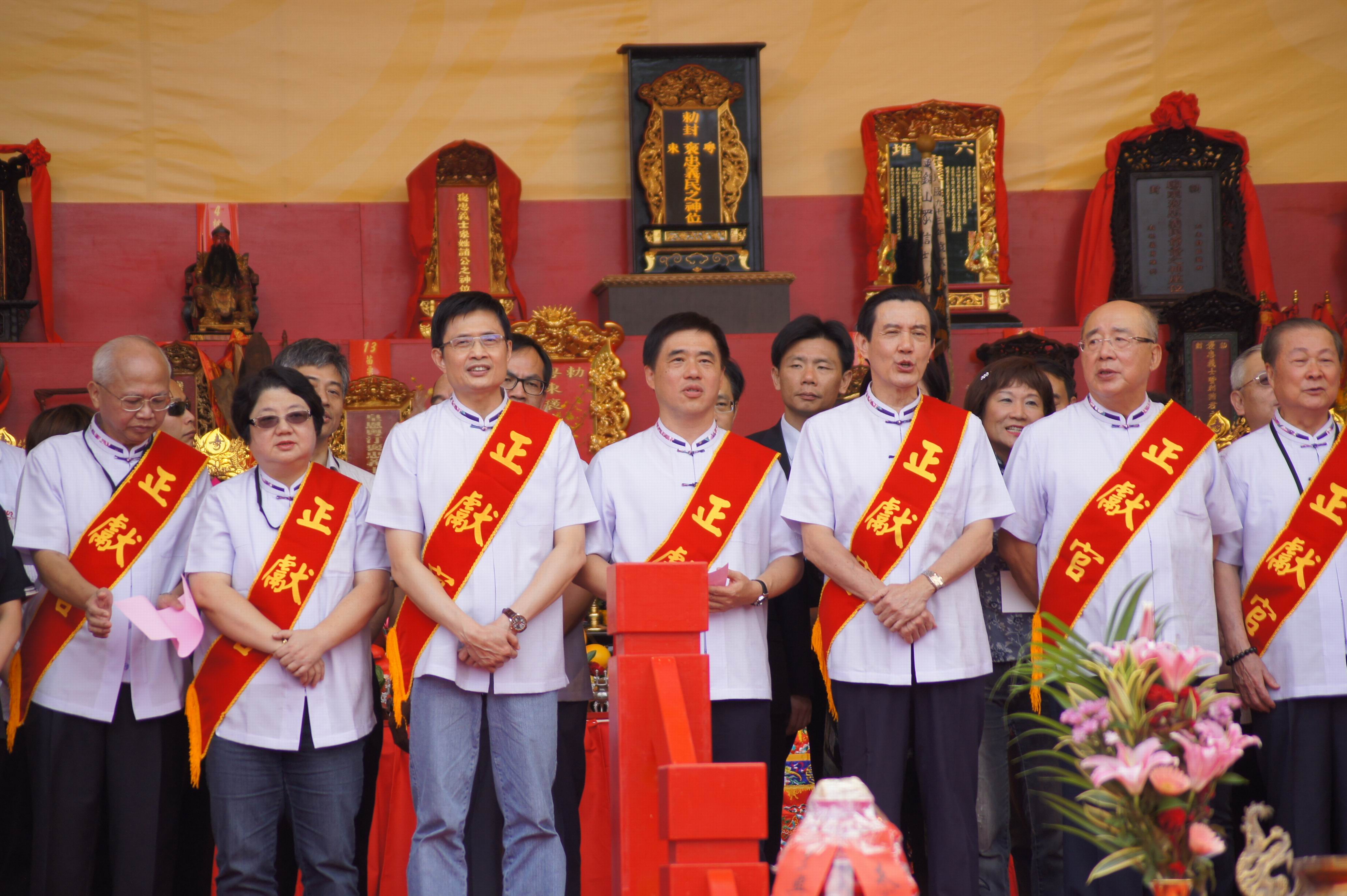 頂著豔陽,來自全臺各地近2萬名客家鄉親雙手合十,虔誠祈求義民爺護佑臺灣。「2012臺北客家義民嘉年華」14日在臺北市客家文化主題公園舉行主祭大典,馬英九總統特別親任正獻官,與世界客屬總會榮譽總會長吳伯雄、客家委員會主任委員黃玉振、臺北市長郝龍斌等依傳統禮序行上香禮,一同感念義民爺保境安民的忠義精神。