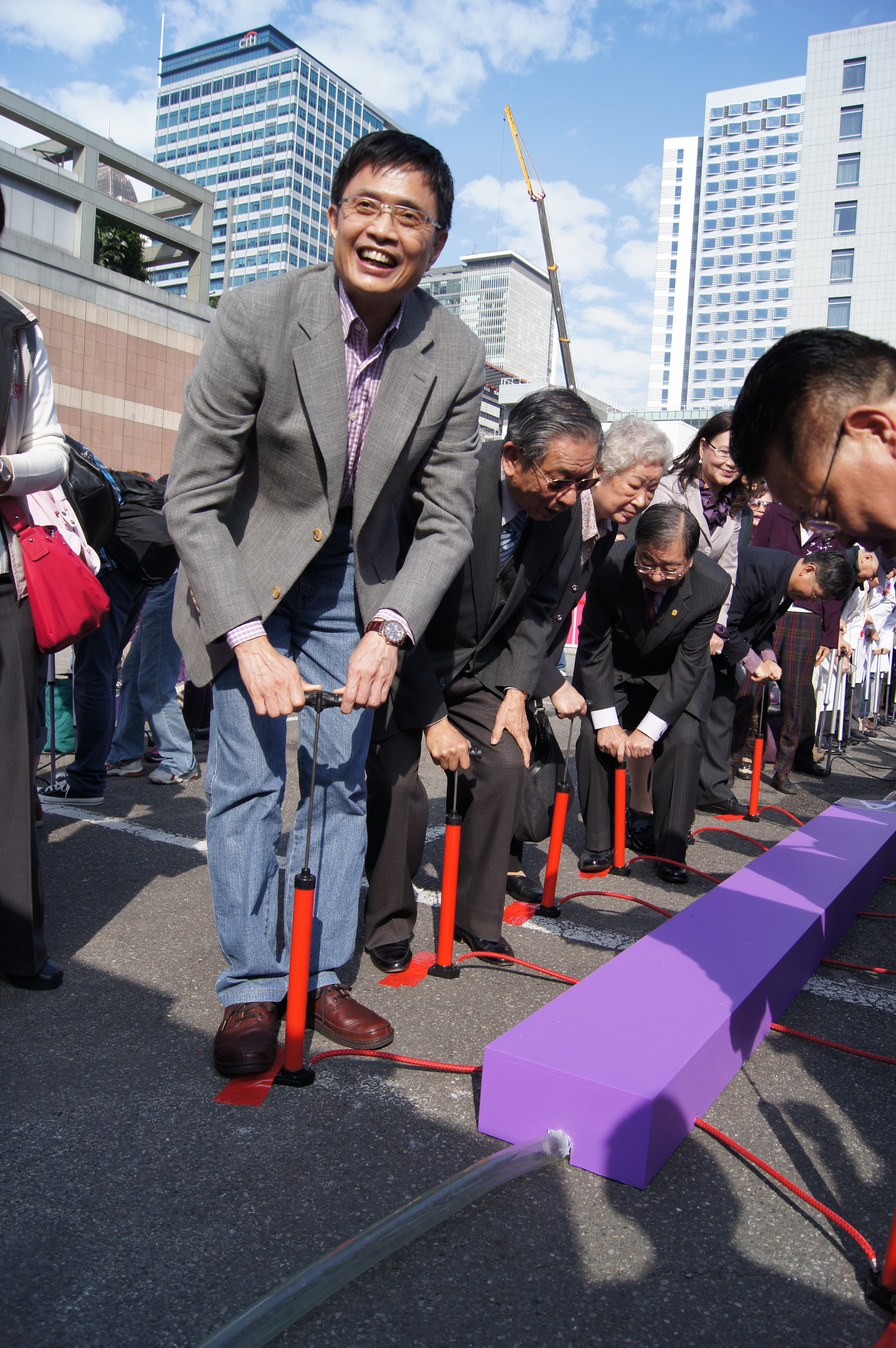 「2012客家飯篼比賽」15日在臺北市信義新光三越A11旁停車展盛大展開,開幕式「千人集氣‧共享福氣」活動,由客委會黃主委帶領全場一千位民眾一同齊心協力為巨型爐灶生火起灶,一方面象徵著客家美食文化薪火相傳,一方面為臺灣及為客家加油打氣、匯聚福氣,同時期許客家美食文化普及全臺及享譽國際。