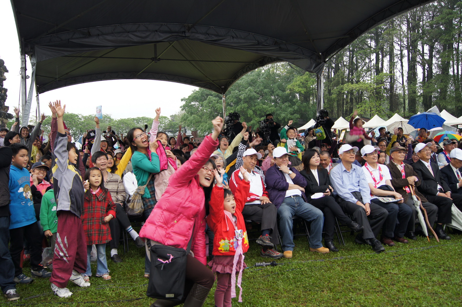 13日活動會場雖然飄起細雨,卻絲毫不減現場參與民眾的玩興與熱情,正式活動開始前,就可見不少情侶撿起滿地的桐花拼貼鋪成浪漫的心型花樣,親密留影;爸爸媽媽則陪著小朋友圍著埔里鎮行動圖書車選書讀書、以書香伴花香;更有小朋友興奮地隨著桐花祭玩偶桐桐與花花的示範,手足舞蹈的跳起了桐花舞;而周邊豐富多元的客家特色攤位也吸引現場人潮駐足消費。