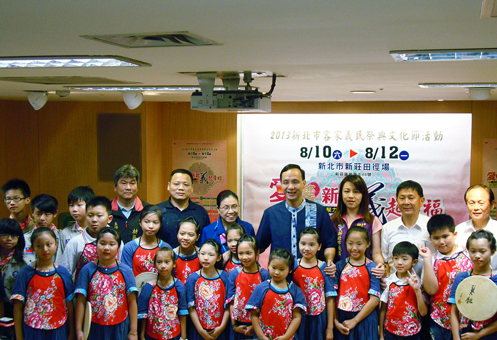 新北市市長朱立倫寄出「義民大愛」請柬,擊出幸福鼓聲,邀請全國民眾一同參加8月10日至12日在新莊田徑場登場的「2013新北市客家義民祭典文化節」活動。