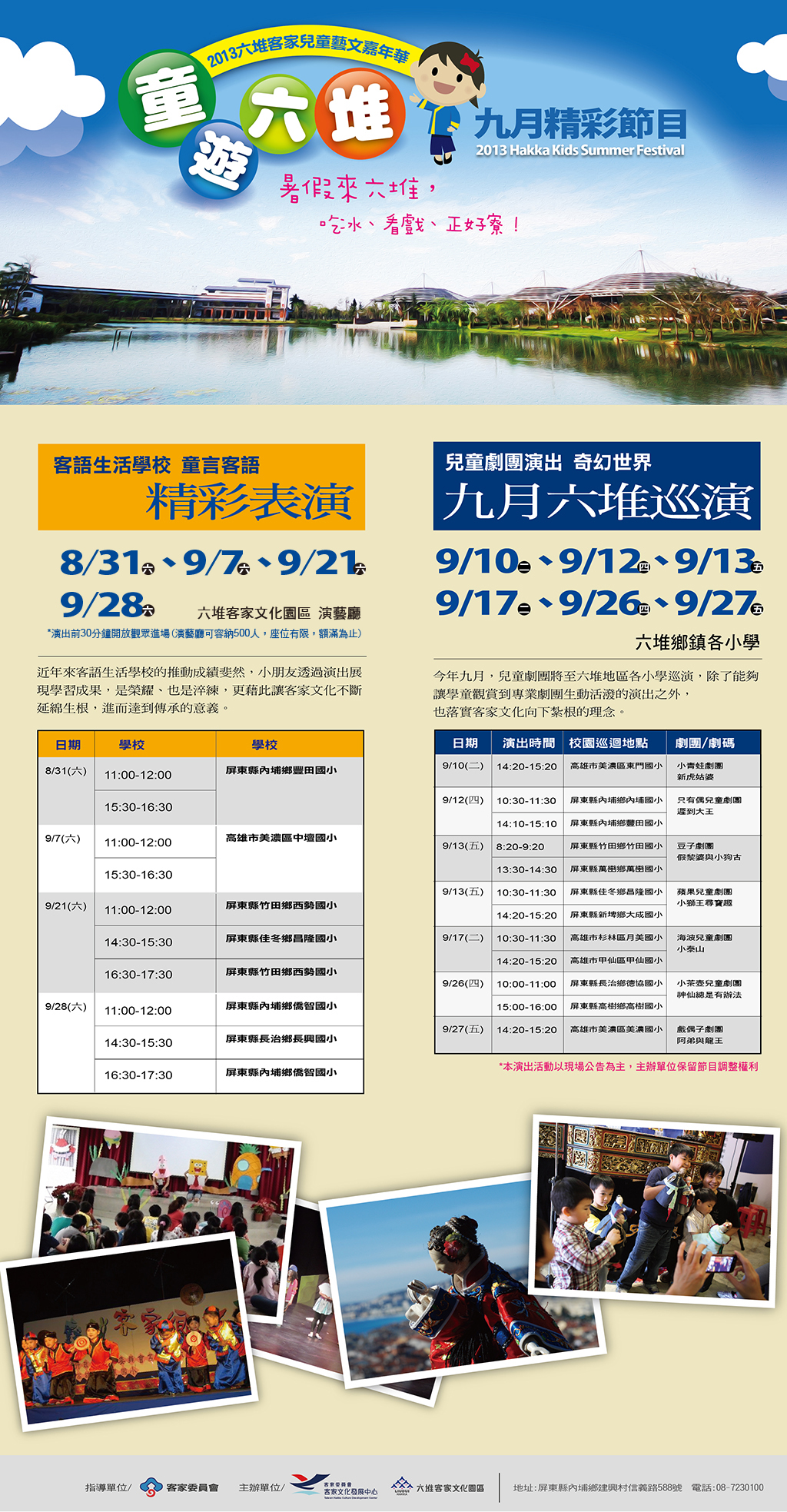 始業式前一日的暖場活動由金曲獎最佳客語演唱歌手謝宇威及客委會青年築夢計畫築夢人林貞妤,從年輕人的角度,展開與客家青年的對話。營期中也特別邀請家喻戶曉的阿基師及國內客籍企業家「京元電子」董事長李金恭等各界傑出人士,和學員們分享職場成功經驗;世新大學新聞系客座教授黃肇松也將為學員們闡述客家的歷史與文化發展。營隊重頭戲則將由黃主委親自與客家青年分享5年多來,客委會如何一步步推動客家微革命,成功塑造客家新印象;結業當天則將以「World Cafe」的互動方式,讓客家後生分享彼此的學習心得,並聚焦青年領袖後續的行動計畫及未來的實踐方向,為活動劃下完美句點。