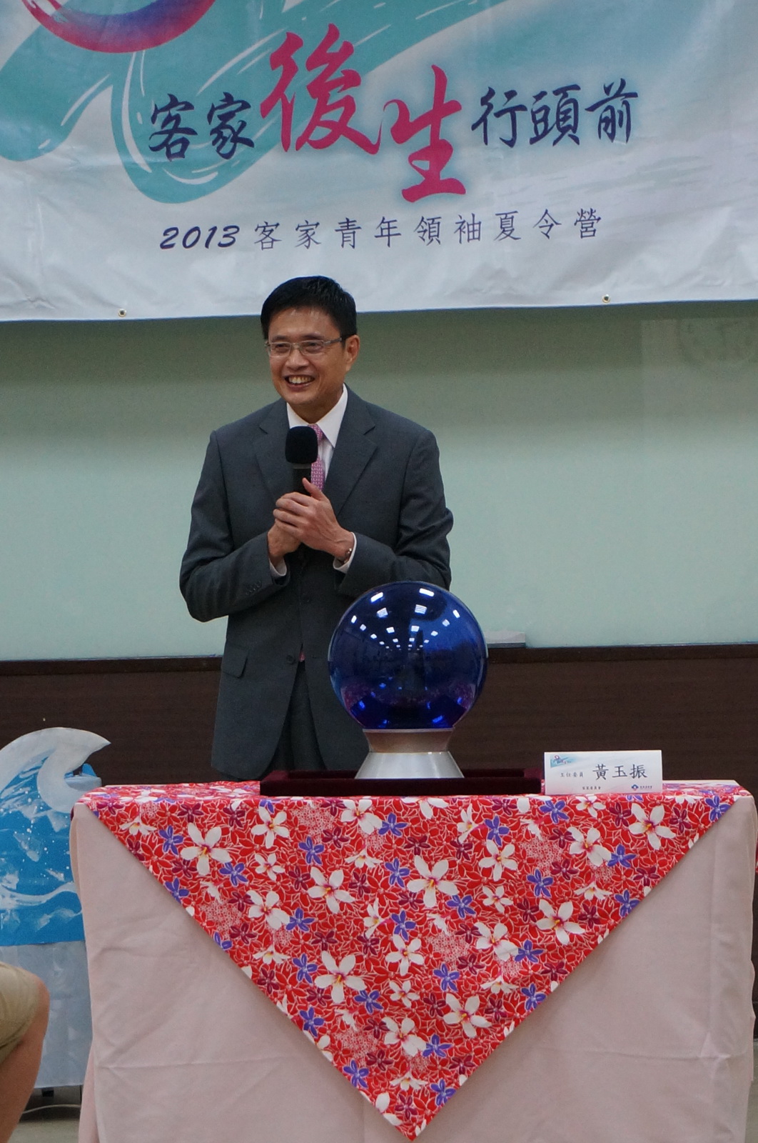 沒有語言,就沒有文化;沒有文化,就沒有族群。黃主委引用語言學家的研究指出,目前世界上大約有6千多個族群,但據統計,每兩週就有1個族群走入歷史。他說,「2013客家青年領袖夏令營」課程包羅萬象,就是要讓學員們感受客家文化魅力,提升身為客家一份子的尊榮感;由於是首度開辦,黃主委強調,每一位學員都正在和客委會一起寫下歷史,為客家青年活動樹立全新里程碑。