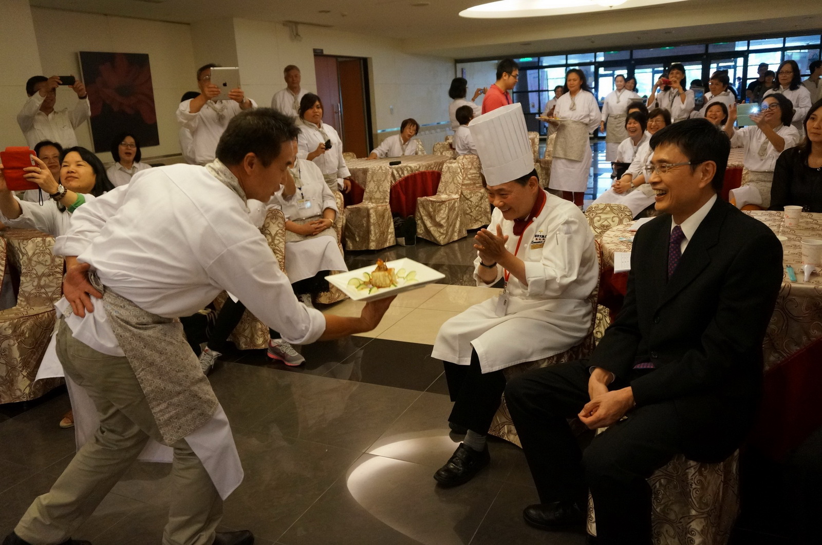 俗話說:「月圓人團圓」,客家委員會「2013海外客家美食料理研習」初階班第四梯次在中秋佳節前結訓,為了讓飄洋過海回臺學習客家廚藝的學員感受「家」的溫暖,特別以「圓滿」為主題,創作歡慶團圓的客家美食,客委會主委黃玉振也親自出席,與學員們一起提前吃客菜、過中秋。