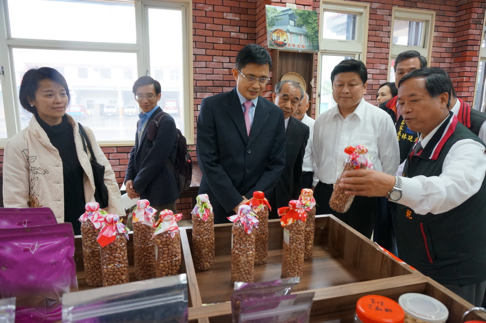 在簡單隆重的揭牌儀式後,由彭鎮長帶領黃主委與傅縣長參觀改造後的中華市場,及市場中百餘個攤位。經客委會補助改造後,中華市場不僅外觀、內部結構及周邊綠美化設施都導入客家文化意象,同時廣泛應用節能省電的LED燈具,讓整體購物環境整齊、乾淨、舒適。隨後,黃主委一行人來到「鳳林客庄產業交流中心」,一同推廣鳳林鎮三項主要農特產品—剝皮辣椒、豆奶與花生。黃主委與傅縣長一同歡迎大家來鳳林做客,感受客家庄的好客熱情、並品嘗風味特殊的鳳林三寶。