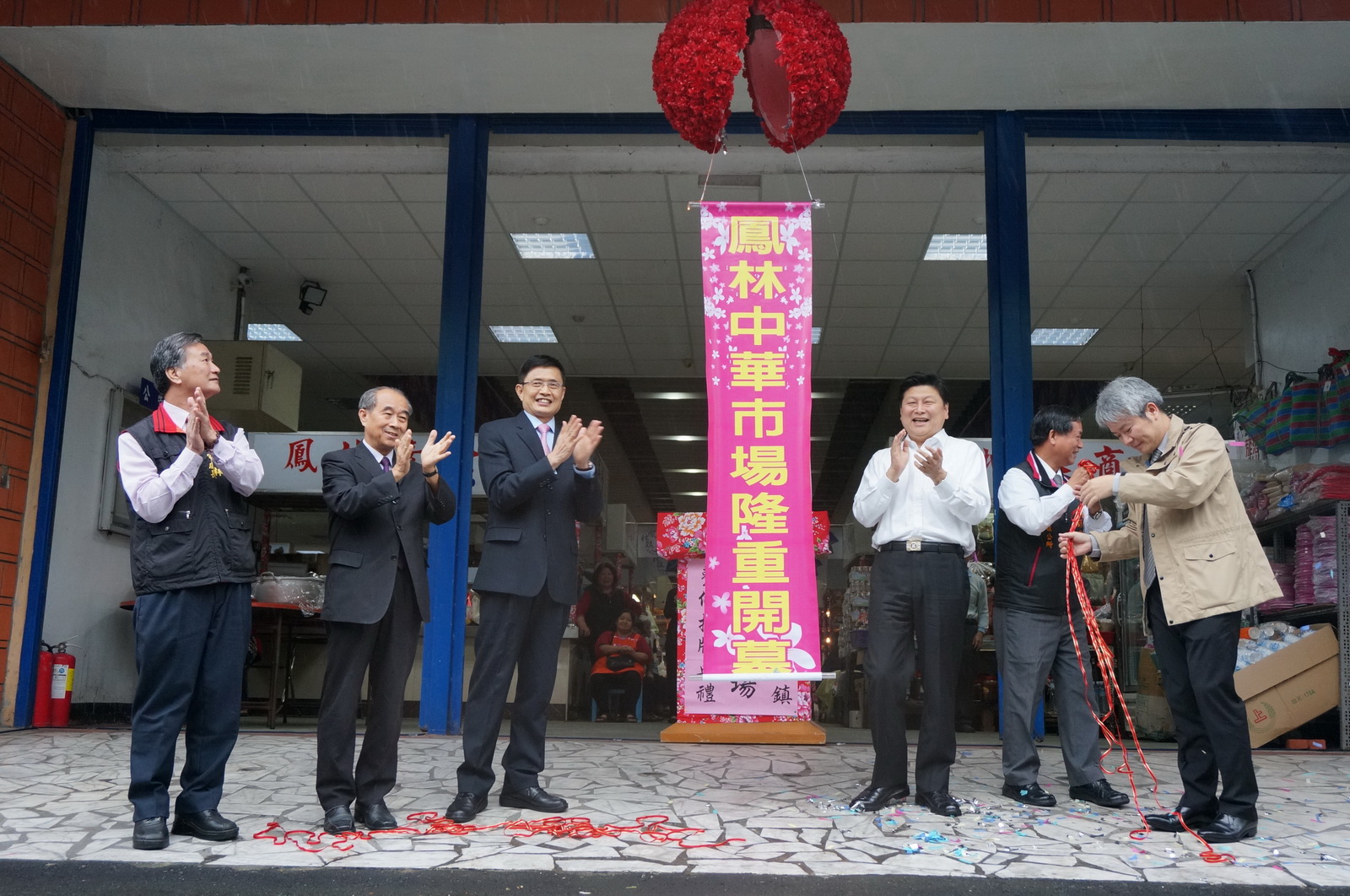 5月6日的揭牌活動由鳳林鎮長彭宗乾主持,包括花蓮縣長傅崑萁、行政院東部服務中心副執行長林有志,中華市場自治會會長黃玉清以及鳳林當地的鄉親好朋友們都一同共襄盛舉。黃主委在致詞時表示,兩年前他開始注意到全臺各地客庄中的傳統市場多有設備老舊或年久失修的狀況,除了造成客庄居民的使用不便外,他也憂心最能代表客家生活的市集文化會因此消失,因此開始籌思如何協助各地客庄傳統市場改造、以及客家特色產業的行銷推展。