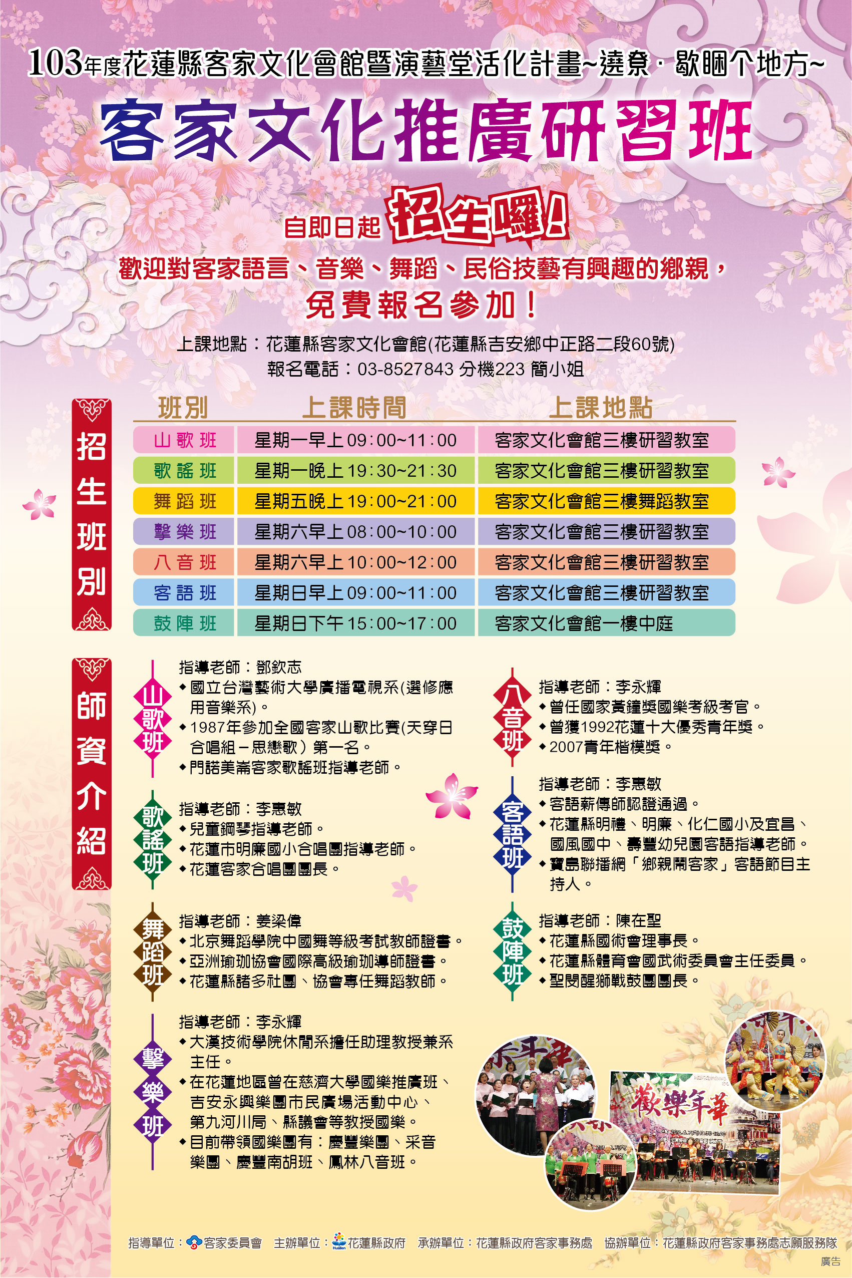 - 客家文化推廣研習班~免費來參加 (花蓮縣政府客家事務處)