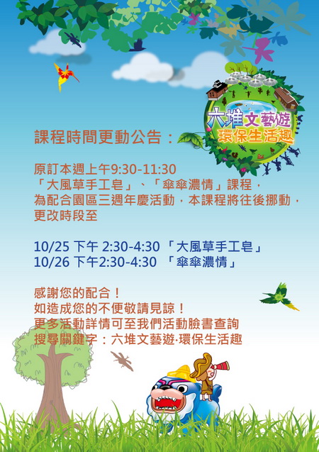 1.「六堆文藝遊-環保生活趣」課程時間變動公告