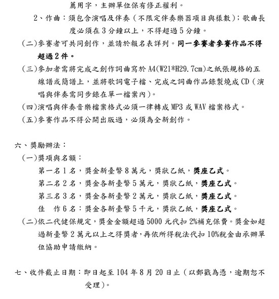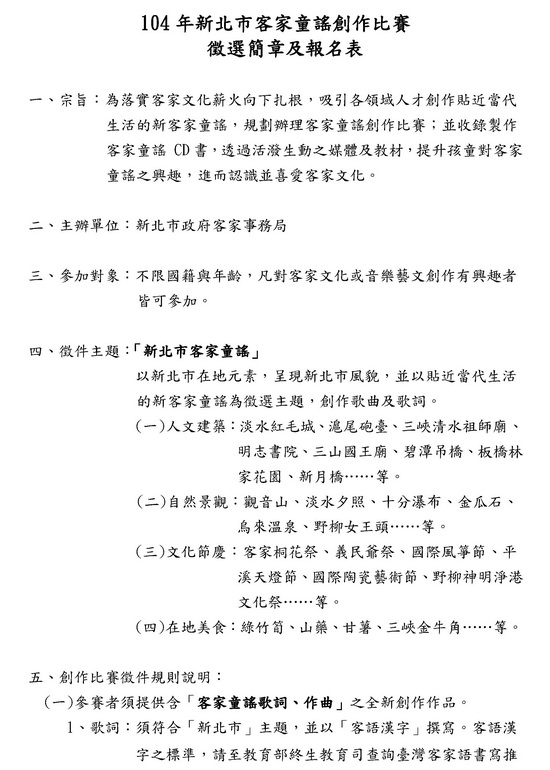 104新北市客家童謠創作比賽 (資料來源:新北市政府客家事務局網站)