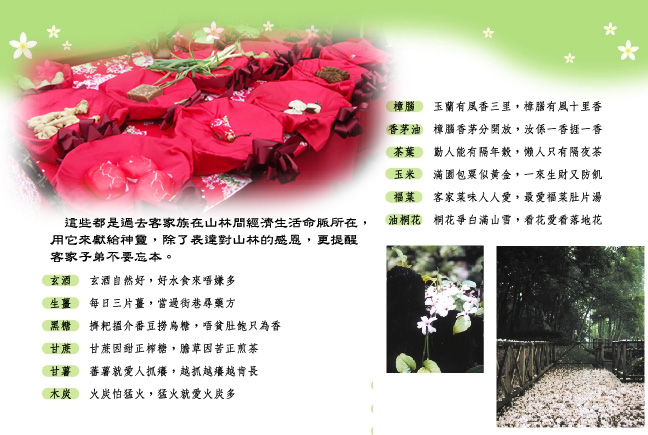 ,配置規劃則以東部縱谷地區客家聚落之生活面、產業面、文化面等相關體驗活動為主軸,包含設置停車服務、入庄廣場、入庄服務區、養身百草區、技藝體驗區、點心庄、懷舊產業區、客家文化學苑、童玩遊樂區、鄉民農園區、狀元大道等區域,期許今日的動土儀式,為園區帶來新生與祝福,更希望透過這個客家園區的設置,讓所有人對東部的客家有一個不同的體驗與認識,並藉由地方文史的整合導覽,能讓參與者真正體驗東部客家傳統生活的方式,重現客家二次移民精神。