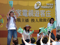 由客家電視台主辦的「客家電視遊客庄」於5月21日下午一點在台中東勢客家文化園區舉行,不僅新聞現場SNG連線播報,現場民眾也可上台“嘎”主播一角,現場爆笑連連,民眾紛紛排隊上台參加新聞播報比賽。