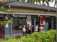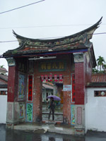 第3站來到萬巒鄉五溝水社區參觀,五溝水東邊有高聳的南大武山(標高2,841公尺),此山山勢陡峭,巒風層疊,聳立萬巒鄉側,造成本區由東往西逐漸傾斜的地勢,順勢而下的河流四散飛奔,造成境內的大小溪流橫互,來自北方萬安方向的東港溪上游,在泗溝水匯集了另一股來自東邊赤山與新置方向的河流,形成了一塊三角形的平原,此即「五溝水」村庄所在的地方。五溝水社區是目前仍保存完善頗具特色的客家聚落村莊,社區內有多戶具百年以上歷史的民宅「伙房」,此民宅建築構成本村一大特色之一。客家人的伙房,是指同一祖公的子孫住同一家,共同開伙,生活的空間,由於住的人多,所以一座伙房的建築面積,常達三、二百坪,「伙房」的建築是揉合客家人早期住宅--穿鑿屋「通風」與「土磚屋」冬暖夏涼的優點,而採用現代材料興建成的,以祖堂為中心在正中央,再由兩側延伸建屋,正廳前為寬廣庭院,比較有錢的人家往往還在庭院前挖一口池塘,總之伙房在氣勢或規模士都表現出泱泱中原民族雄偉的風範,參訪之劉氏宗祠就是一例。