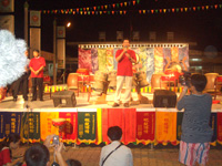 晚間7時30分,拔仔庄第8屆鼓王爭霸戰在醒獅團的舞動下正式展開,歷時兩個鐘頭,鼓聲咚咚,將現場氣氛High到最高點。李主委是會場貴賓,上台致詞時特別對現場擠滿了萬頭鑽動的觀眾感到驚訝,這代表了行政院客委會近幾年來對後山客家文化的推動,尤其是對富源社區在鼓藝傳習及靚染工坊的扶植與補助方面,展現出驚人的成效。而這樣的社區活力的凝聚與發散,正與行政院謝院長所極力倡導的台灣健康社區六星計畫的精神相契合,未來行政院客委會將繼續給予全國客家社區大力的支持。
