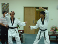 今年由客委會主辦、國立體育學院承辦的的「2005 A-Ha!哈客夏令營」94年8月15日至18日在林口國立體育學院百人階梯教室登場,客委會李主任委員永得撥冗蒞臨開幕致詞,刻意換上道服和朱木炎擺出打拳架式,表示舉辦跆拳夏令營是要推廣運動、強壯身心,讓小朋友在快樂、輕鬆的環境下學習,培養不服輸的精神,成為「第二個朱木炎」。