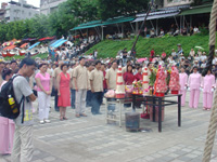 祭典會場同時展示了5隻大豬公,及表演客家歌舞等,下午4時由台北縣代理縣長林錫耀主持祭典,包括念祝文、三獻禮等,最後全體大合唱,曲目有「客家本色」、「皇天不負苦心人」等,聲勢浩大。