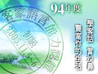 引起各界矚目的「94年度客家語言能力認證初級考試」購買簡章人數已突破2500人。行政院客家委會主任委員李永得於8月30日宣佈凡報名參加客語能力認證的考生,9月底之前均可免費收到一份「客語認證基本詞彙-初級版」(含CD)及「客語認證題庫」(含CD)等輔助教材,李主委表示,考生只要熟讀這些教材應該可以輕鬆通過初級考試。