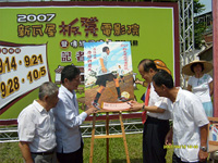 行政院客家委員會李永得主委與鄭永金縣長特別蒞臨會場致詞。李永得主委於致詞時表示:臺灣客家文化中心籌備處於去年舉辦了首屆的「板凳電影院」,邀請民眾來到新瓦屋的客家聚落大「禾堂」,體驗傳統社會中「禾堂看大戲」的情境,獲得民眾熱烈的迴響;今(2007)年,竹北六家地區隨著高鐵的通車,人口愈來愈密集,「新瓦屋客家文化保存區」的重要性也愈顯彌足珍貴。在各界共同努力下,園區的整建工程也陸續完工,如景觀生態池的整建,使當地多了一個享受寧靜綠意的生態淨土;而傳統泥磚屋也不復頹圮,成為具有濃濃古趣,值得親身體驗傳統客家生活的珍貴建築,因此2007年的「新瓦屋客家文化保存區」將一展新的風貌,提供民眾一處結合文化、休憩、與生活的完整客家文化場域。鄭永金縣長則表示竹北六家的「新瓦屋客家文化保存區」具有珍貴的客家歷史與文化價值的意涵,其中所展現的一草一木、一景一物,都值得所有縣民的重視與珍惜,期許未來園區能讓更多民眾接觸與認識客家文化,瞭解客家精神。