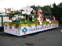 行政院客家委員會配合97年國慶大會,用美濃當地著名地標東門樓、精緻時尚的客家創意商品及桐花意念,打造象徵客家新意象的花車,10月10日(星期四)上午參加國慶花車遊行,在總統府前亮麗登場。