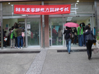98年度客語能力認證初級考試於11月28日在全國10個考區、17所試區學校同步登場,共有6,662名考生報名,口試到考率為76%,筆試到考率為76.3﹪,缺考率分別為24%和23.7%,本次考試預計在99年1月15日放榜。行政院客委會主委黃玉振、副主委劉東隆、鍾萬梅分赴台北、桃園及花蓮等考場瞭解事務狀況,為考生們加油打氣。