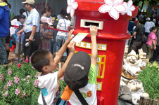 此外,行政院客委會特別準備「人造雲朵機」,以朵朵桐花白雲堆砌出童趣夢想,潔白柔軟的雲朵在面前冉冉升空,引起大小朋友好奇圍觀,滿天的桐花雲朵帶給現場無限浪漫氣息。除了精心布置的桐花意象,還有別出心裁的「未來明信片」活動,吸引許多人爭相領取精緻的明信片,寫下滿滿心意,並投入桐花郵筒;行政院客委會表示,所有明信片將在明(100)年桐花祭時一起寄出, 屆時民眾將可收到自己的祝福與叮嚀。